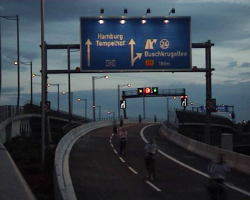 | Train | Treptow | Abends | ca. 10min | A.Warhol | slow, no effects | Im Abstand von 10 Minuten begegnen sich auf der Oberbaumbrücke die U-Bahnen der Linie 1. Aber zur Zeit der Sonnenwende werden an ein paar Tagen, sofern das Wetter wolkenlos ist, und man am rechten Ort ist, ausserdem die Treptowers gesprengt. |